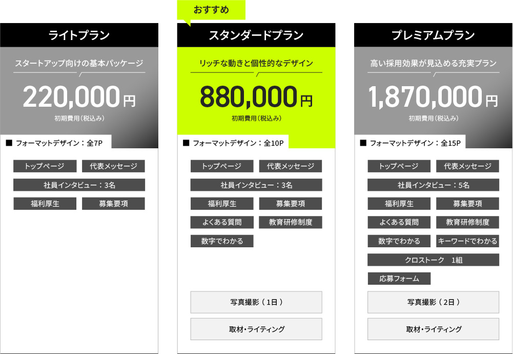 を揃えた、中小企業向けの実用的な採用サイト制作サービスです。